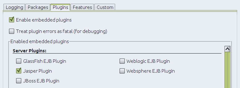 JRebel plugin includes several plugins itself design for specific frameworks and applications. Since we are focused on Liferay development, we will deactivate some of them to optimize JRebel performance. In your IDE, go to JRebel Plugin Preferences, launch the Agent Settings and select the Plugins tab. Then leave checked only those plugins shown in the following caps: