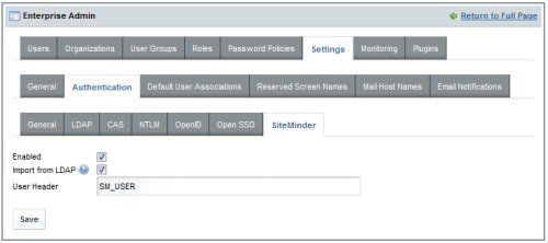 1. Set this to true to enable CA SiteMinder single sign on. If set to true,