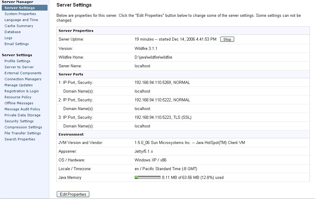 11. Once you login, you'll see Server Settings. Check over the settings. If you need to edit any of them, hit the Edit Properties button at the bottom.