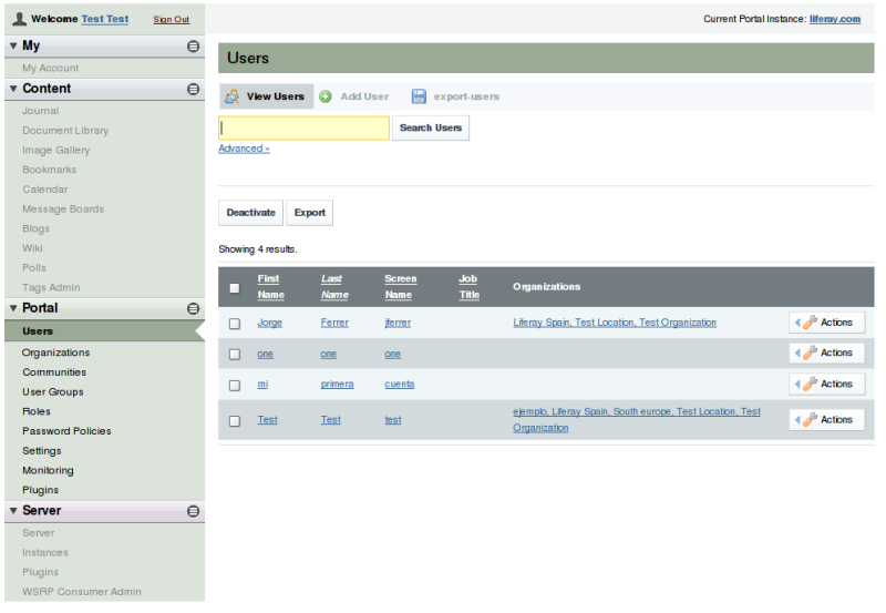 This wiki does not contain official documentation and is currently deprecated and read only. Please try reading the documentation on the Liferay Developer Network, the new site dedicated to Liferay documentation. DISCOVER Build your web site, collaborate with your colleagues, manage your content, and more. DEVELOP Build applications that run inside Liferay, extend the features provided out of the box with Liferay's APIs. DISTRIBUTE Let the world know about your app by publishing it in Liferay's marketplace. PARTICIPATE Become a part of Liferay's community, meet other Liferay users, and get involved in the open source project. Control Panel