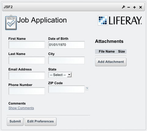 Contains a single "Job Application" portlet within the WAR that demonstrates several of the key features of JSF 2 and Liferay Faces Alloy:
