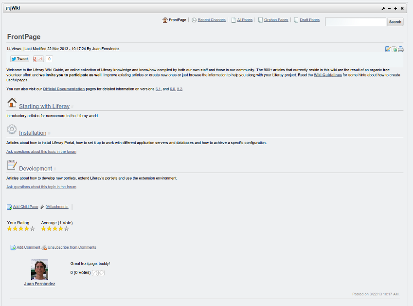 This template displays the wiki pages plus social bookmarks, comments and ratings for wiki pages and their child pages.