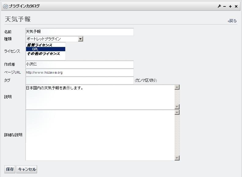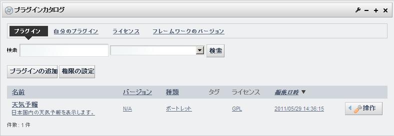 | ユーザがインストールして自分のページで利用できるプログイン一覧を作成します。 他ユーザにポートレットの登録を許可することも可能です。