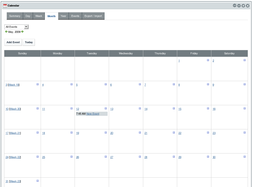 Calendar Portlet is one of Liferay's Out of The Box Portlets
