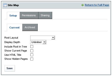 Displays a structured directory of links to all pages in the portal. The Site Map can be used to navigate directly to any page on the site. It can be configured to display the entire site or a sub-section of pages.