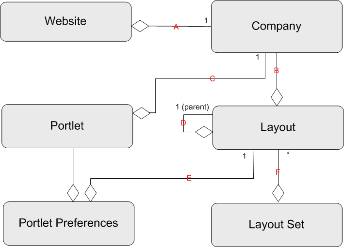The following are the tables within the existing Liferay SQL Model targeted by this proposal. These tables do not provide the complete description of the model as several of them have fields which hold xml documents in the form of CLOBS.