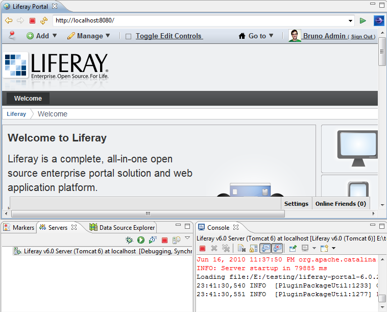 - 3. The eclipse browser should open to the portal home at http://localhost:8080