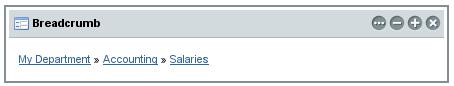 Displays a trail of “parent” pages for the current page. The Breadcrumb Portlet can be placed on public portal pages as a navigational aid when using Liferay to publish websites.