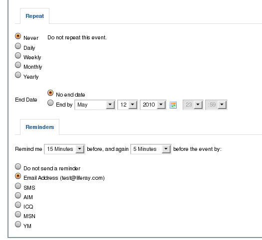 - Add reminders for your events using email, SMS, or even Instant Messenger
