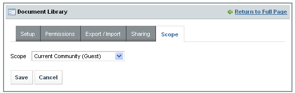 You can choose the scope of the document library. It can be current community or current page. If you choose current community, then the document library is community wide, but if you choose current page, then that document library is related to that current page only.