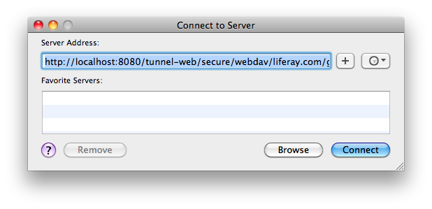 2. Type the address of the WebDAV server in the Server Address field and click "Connect". Enter credentials when prompted.