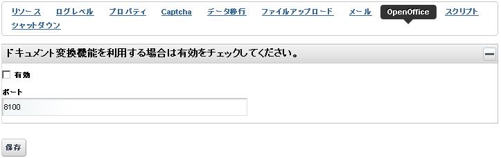 ヒント:もし別のアプリケーションでポート8100を利用している場合は、別のポートを指定してください。別のポートを使う場合は、サーバ管理/OpenOfficeページのポート番号も合わせて変更してください。