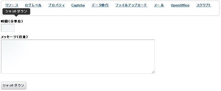 Liferayポータルの起動中にポータルをシャットダウンする必要がある場合は、シャットダウンページからポータルを停止することができます。ポータルがシャットダウンするまでの時間の指定とログインしているユーザに送るメッセージを設定することができます。メッセージを設定すると、ログインされているすべてのユーザのページの上にメッセージが指定されたシャットダウン時間まで表示されます。指定した時間になると、ポータルが停止したっとメッセージが変わります。