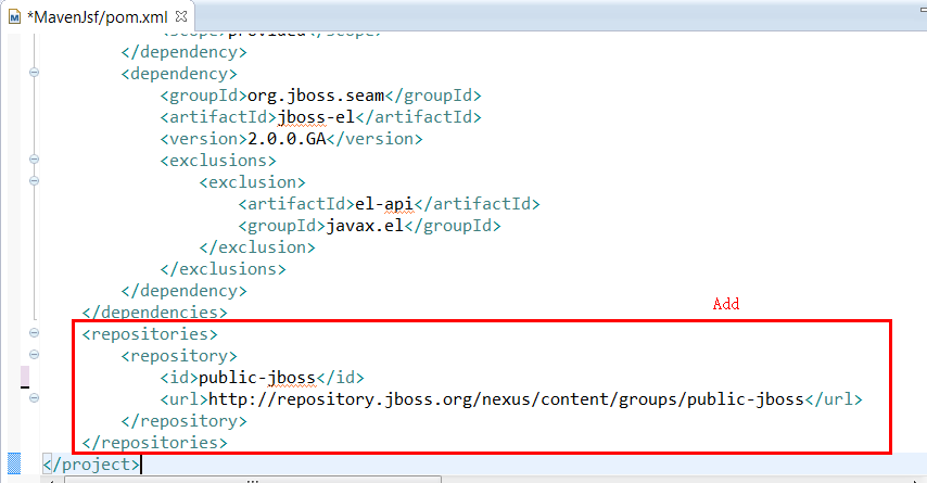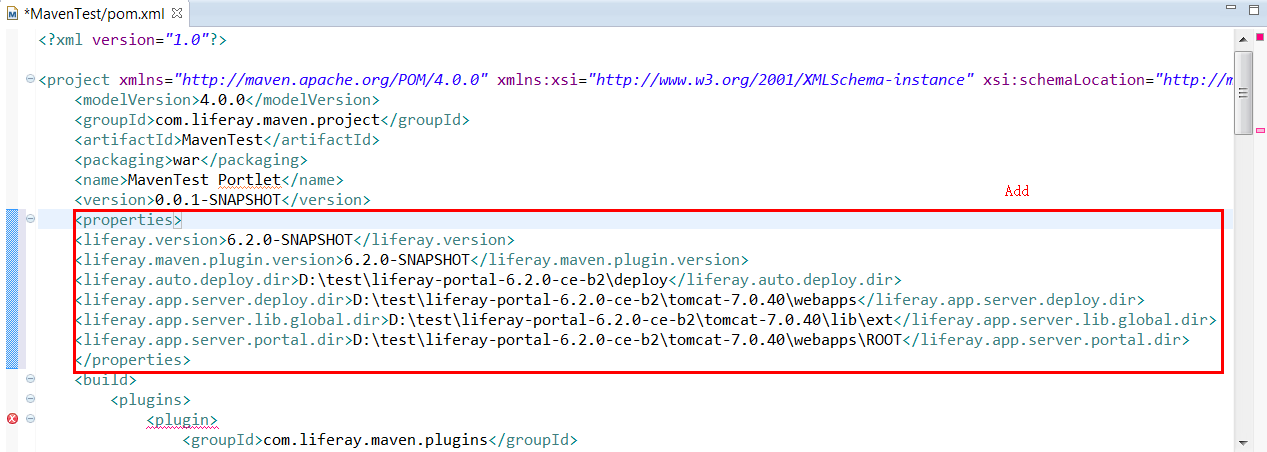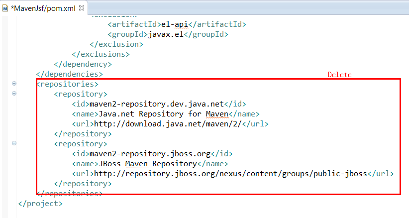 After the create project wizard, you could see there is an error in pom.xml file. We need to fix this error.