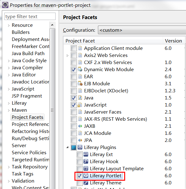 - Right click project-> Properties-> Project Facets-> Liferay Plugins