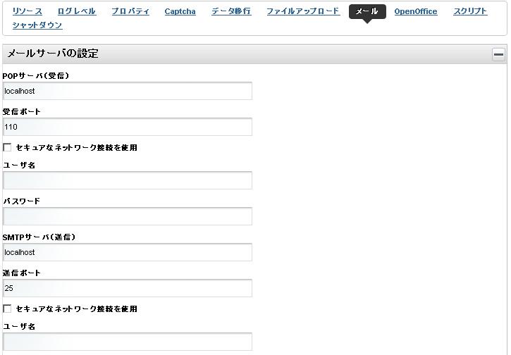 portal-ext.propertiesの代わりにこのページからメールサーバの設定を行うこともできます。なおこのページにメールサーバの設定を行うとportal-ext.propertiesに設定された値を上書きします。
