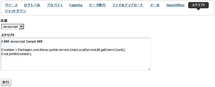 データ移行やサーバ管理用など、LiferayからJavaScript、Groovy、Python、Ruby、BeanShellスクリプトを実行することができます。