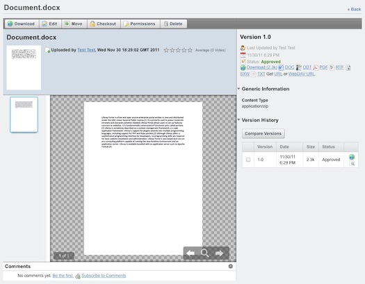 In Liferay 6.1, the Document Library portlet has been renamed to the Documents and Media portlet to highlights its unique qualities in supporting documents (e.g., .doc, .odt, .pdf, etc.) as well as multimedia formats (e.g., .wav, .mp3, .mov). Moreover, if configured properly, Liferay will be able to generate preview files for end users to view these files without needing to download them in their entirety. This article addresses this feature of preview generation.