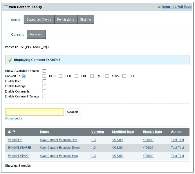For more advanced options when displaying contents of all types check the Asset Publisher Portlet.