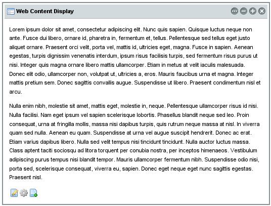 This wiki does not contain official documentation and is currently deprecated and read only. Please try reading the documentation on the Liferay Developer Network, the new site dedicated to Liferay documentation. DISCOVER Build your web site, collaborate with your colleagues, manage your content, and more. DEVELOP Build applications that run inside Liferay, extend the features provided out of the box with Liferay's APIs. DISTRIBUTE Let the world know about your app by publishing it in Liferay's marketplace. PARTICIPATE Become a part of Liferay's community, meet other Liferay users, and get involved in the open source project. « Voltar para Web Content...