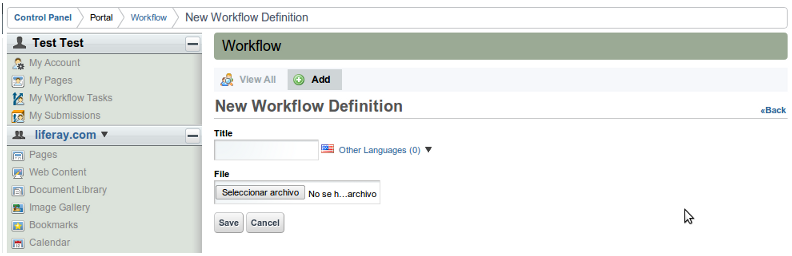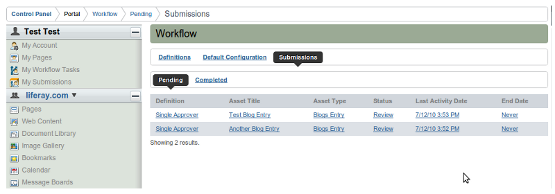 The Workflow portlet controls the workflow system for the whole portal. In this portlet you can manage all workflow definitions, configure the default behaviour for the portal and view all the portal's submissions