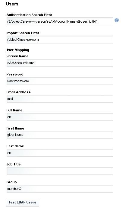 If you wish to change how users login (Ex. Login with screen name), then change the settings in theAuthentication Search Filter field.