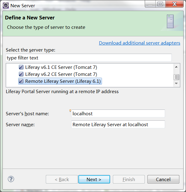 9. The next step is to define a new remote server. So the first thing is to click on the liferay server shortcut and open a new page called Define a New Server.
