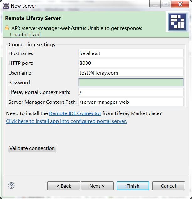 1. Ensure that the remote Liferay Portal instance is running and you can login using OmniAdmin username/password