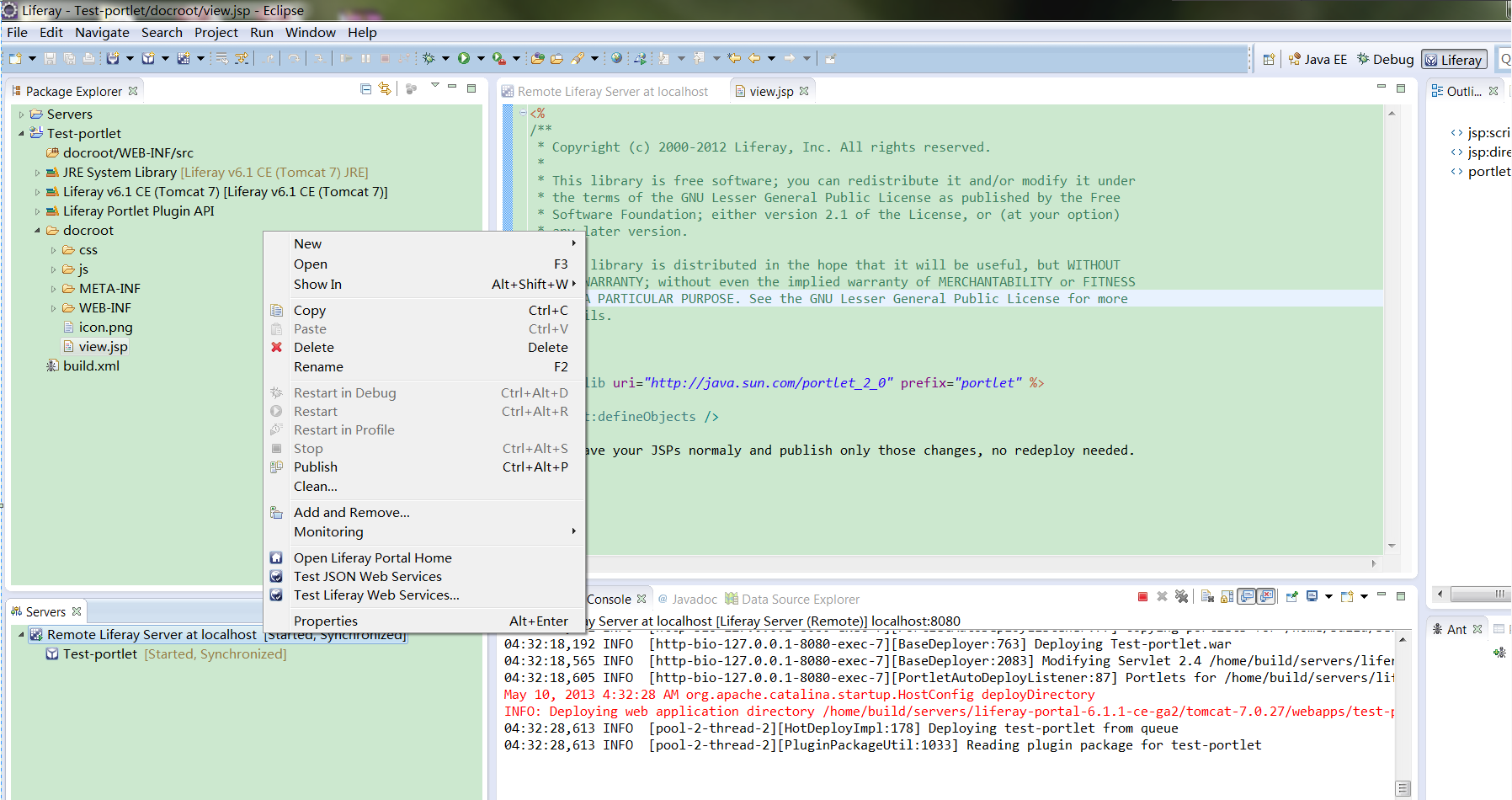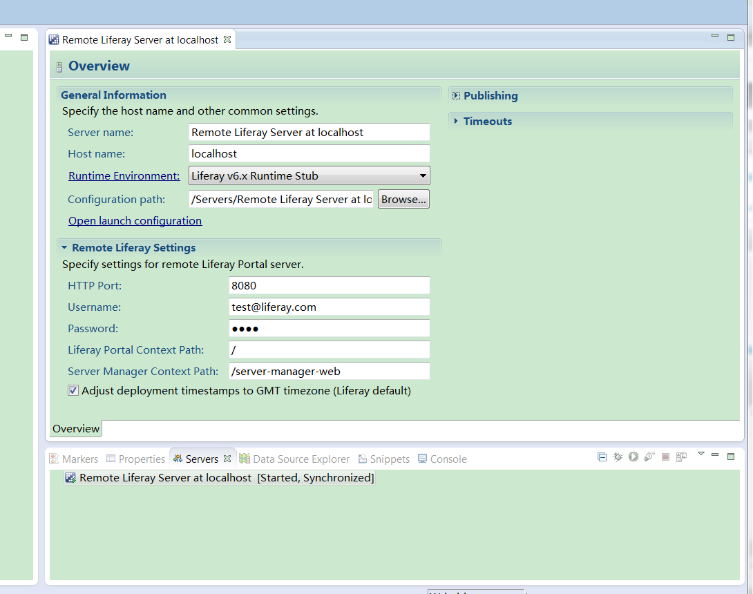 Once you have the Remote Server correctly configured and connected in Eclipse, you can begin using it as you would a local Liferay Portal Tomcat server, publishing projects to the server.