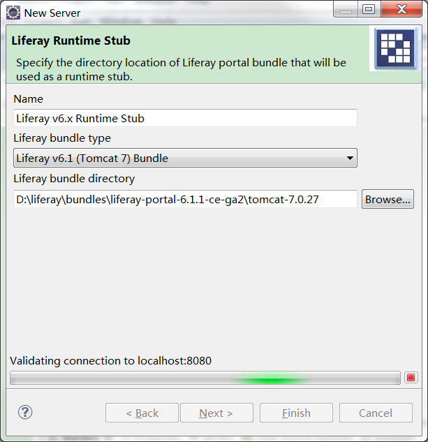 12. Select the runtime stub as well or configure a new one if one isn't available. This must point to a local Liferay Portal Tomcat bundle.
