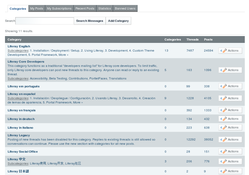The Message Boards portlet is used as the central communication tool in www.liferay.com. It can be accesses in http://forum.liferay.com