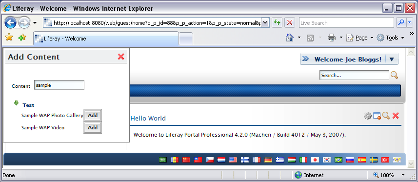 This wiki does not contain official documentation and is currently deprecated and read only. Please try reading the documentation on the Liferay Developer Network, the new site dedicated to Liferay documentation. DISCOVER Build your web site, collaborate with your colleagues, manage your content, and more. DEVELOP Build applications that run inside Liferay, extend the features provided out of the box with Liferay's APIs. DISTRIBUTE Let the world know about your app by publishing it in Liferay's marketplace. PARTICIPATE Become a part of Liferay's community, meet other Liferay users, and get involved in the open source project. « 返回到 Sample Portlets